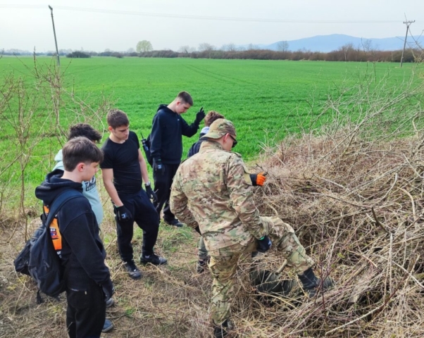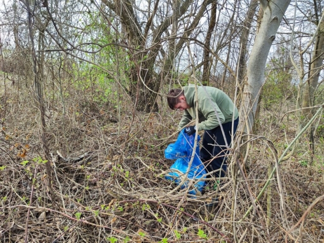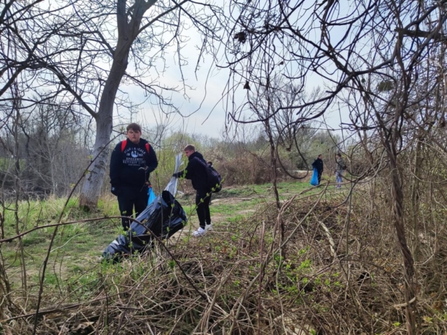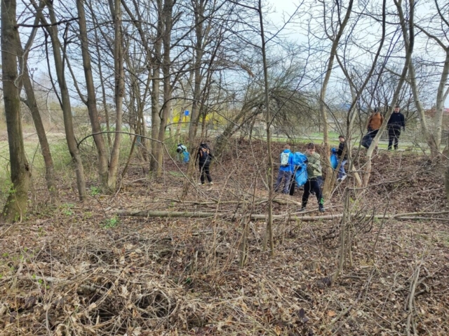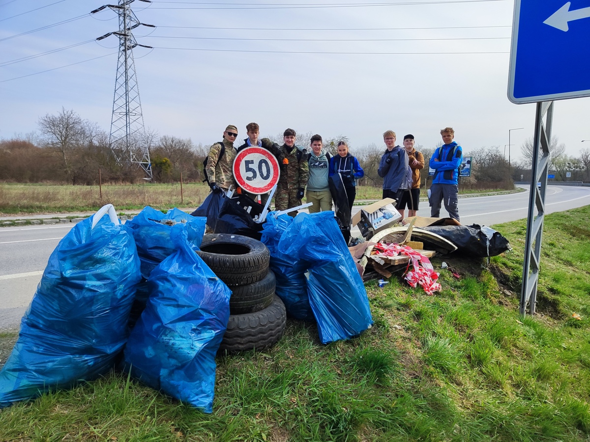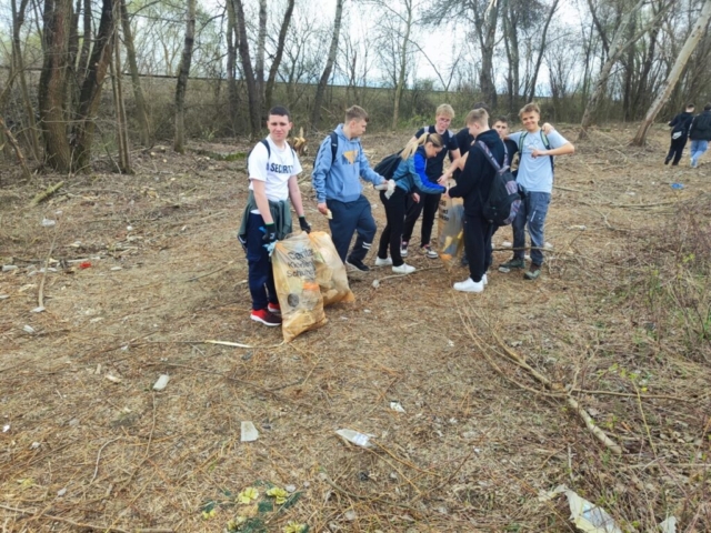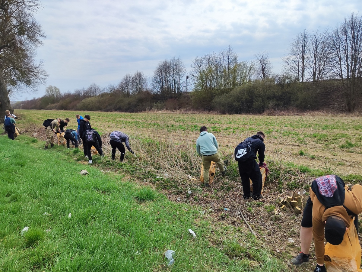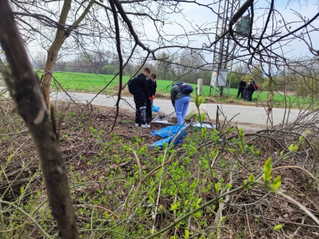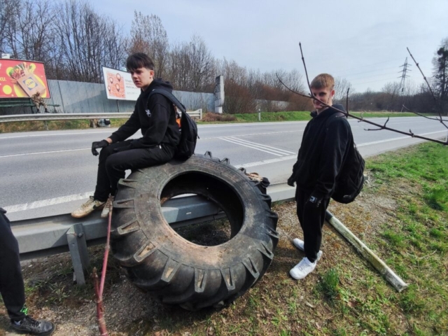 spolu s učiteľom, na deň očisty prírodnej plochy ohraničenej cestou a